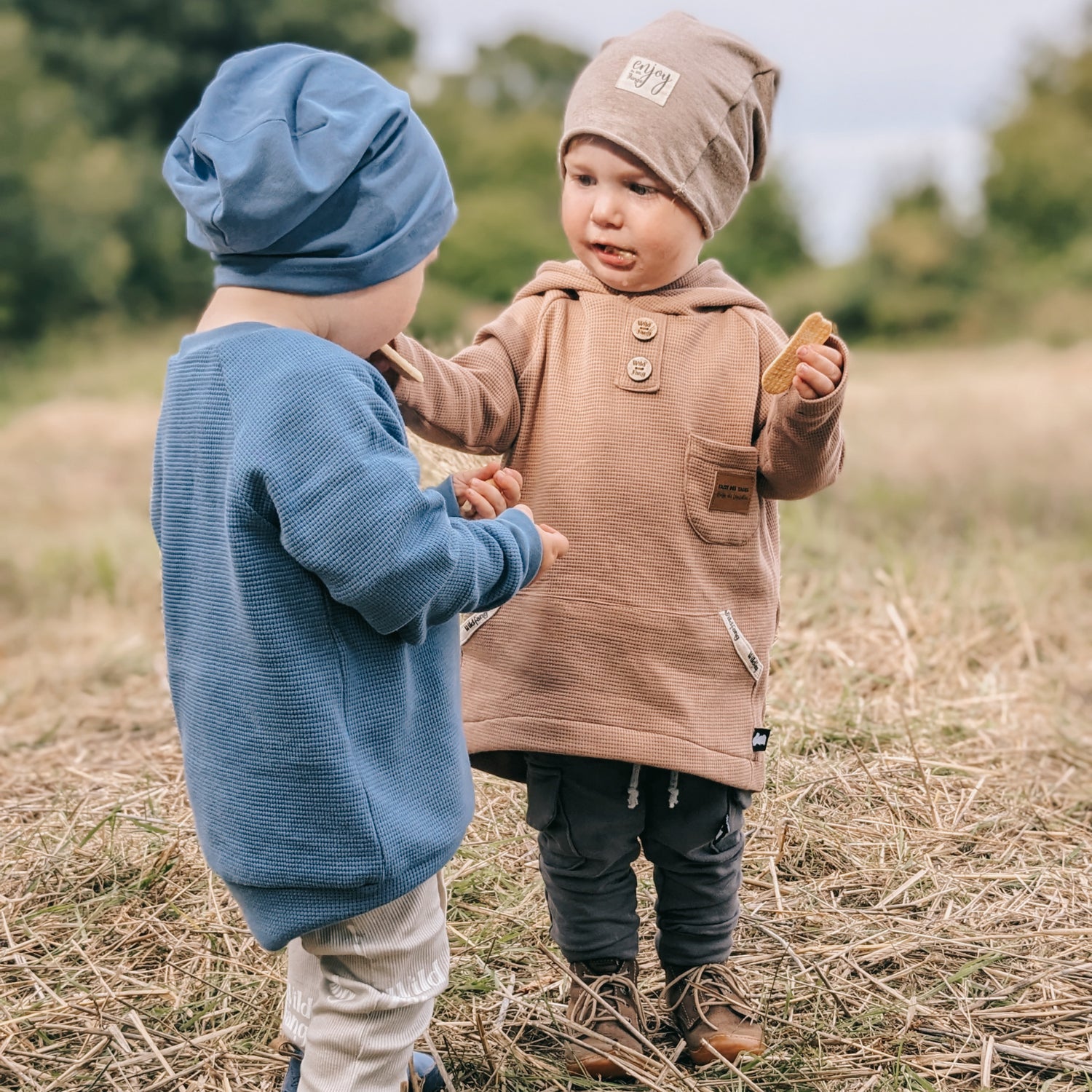 Unsere Stoffe sind sorgfältig ausgewählt – größtenteils in Bio-Qualität – und besonders hautfreundlich für dein Kind. Sie überzeugen durch ihre hohe Farbintensität, die auch nach vielen Wäschen erhalten bleibt. Kein Ausbleichen, kein Verziehen – einfach langlebige Lieblingsstücke, die genauso schön bleiben wie am ersten Tag.