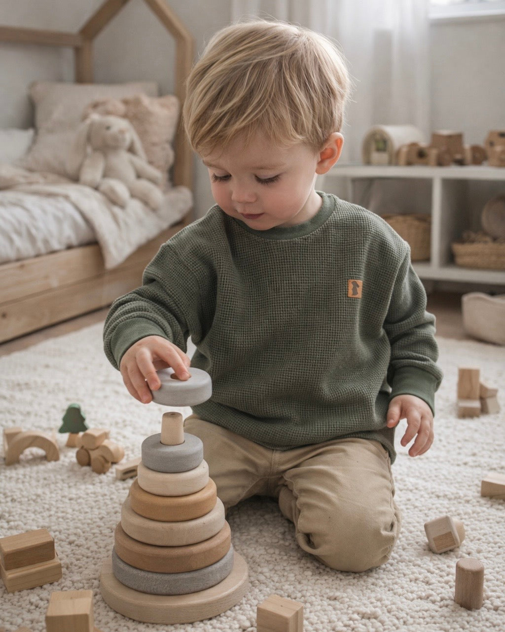 Unsere Stoffe sind sorgfältig ausgewählt – größtenteils in Bio-Qualität – und besonders hautfreundlich für dein Kind. Sie überzeugen durch ihre hohe Farbintensität, die auch nach vielen Wäschen erhalten bleibt. Kein Ausbleichen, kein Verziehen – einfach langlebige Lieblingsstücke, die genauso schön bleiben wie am ersten Tag.