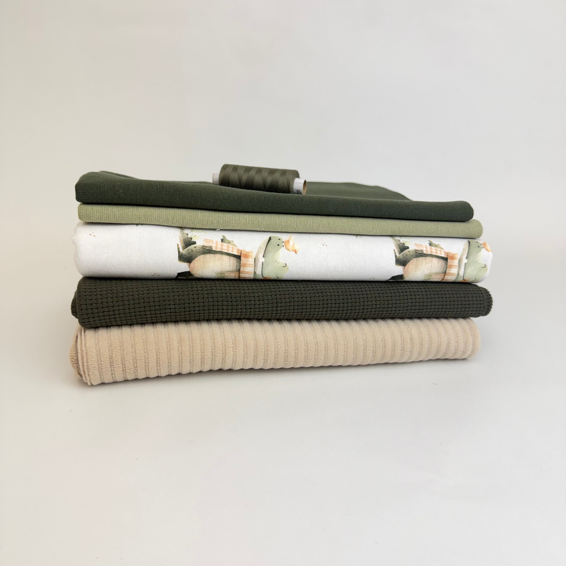 Je 0,5m Waffelstrick Armeegrün und Samtcord Beige als Kombistoffe